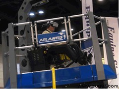 在2005年美国“军事/工业训练、仿真及教育年会”(I/ITSEC)上,Atlantis Systems International公司推出了其全新的培训产品 – 直升机职业训练设备(英文缩写:HVT)。产品一亮相便成为了展会的亮点,许多与会者都争相体验这款垂直飞行训练模拟设备。 Atlantis公司在该产品的制造过程中,采用了双通道图像生成器和NVIS的NVISor SX头戴式显示器,并配有先进的音频设备及配套悬挂式麦克风。机身可以装配为Westland EH-101三引擎中型运输直机,也可改装为Bell 206机型。这一革命性的可改装虚拟系统可以满足传统直升机以及新型垂直起飞飞机的训练要求。 该系统适用于普通直升机和V-22鱼鹰多用途飞机,还可以满足“联合攻击战斗机”的训练要求。“直升机职业训练器”的优势包括:作为HVT的重要组成部件,NVISor SX显示器可以通过图像生成器以三维立体形式准确显示出直升机机舱的内外环境,为训练人员营造出逼真的飞行环境。图像为1280 x 1024像素全彩色图像,由飞行时获得的不同数据组成,包括海拔高度、分类、向量图、以及卫星图像等,可以生成连续的座舱及全景视觉环境。
